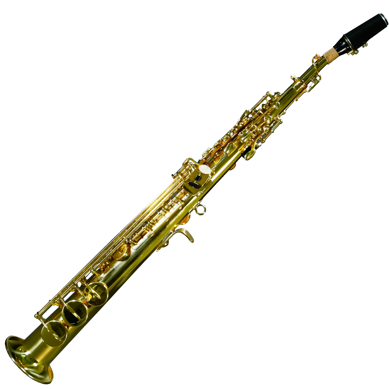 Finitura laccata in ottone dorato lucido intenso, con custodia a zaino, spazzolone e panno pulizia, bocchino legatura e ancia